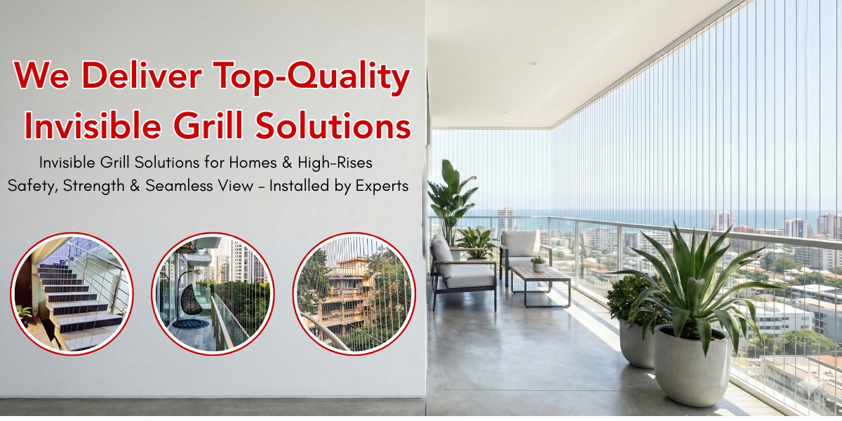 Invisible grills are ultra-strong, thin, stainless-steel safety wires installed on balconies, windows, and open areas to provide maximum protection without blocking your view. These modern, elegant grills enhance safety while maintaining an open and premium look for your home or office.